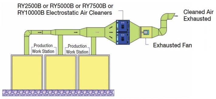 Электростатические фильтры RydAiR это правильное решение для очистки дыма и пыли от сварки, переработки масла, резины, пластика, паров масла, выхлопных дизельных газов, сигаретного дыма, дыма от резки металла, и всех видов дыма от других производственных процессов.